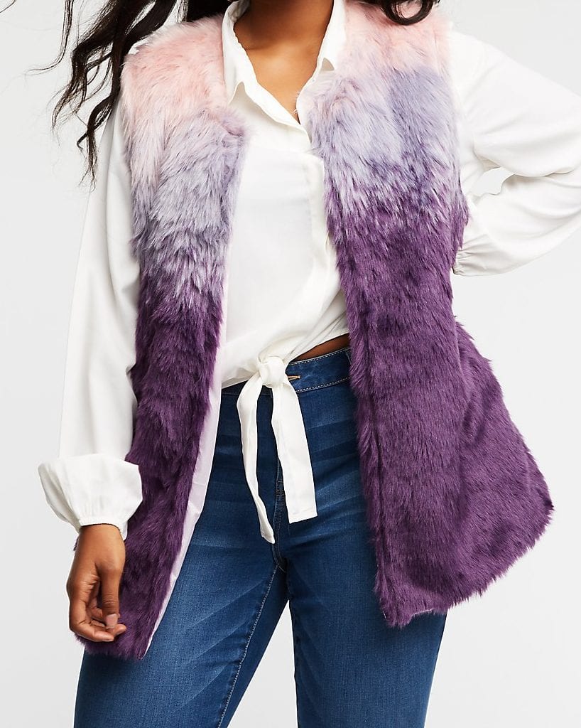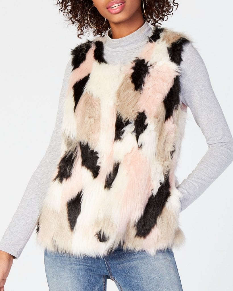 Faux fur outerwear–vest or jacket–is the perfect way to add a stylish flair to an outfit as simple as jeans and black tank top.