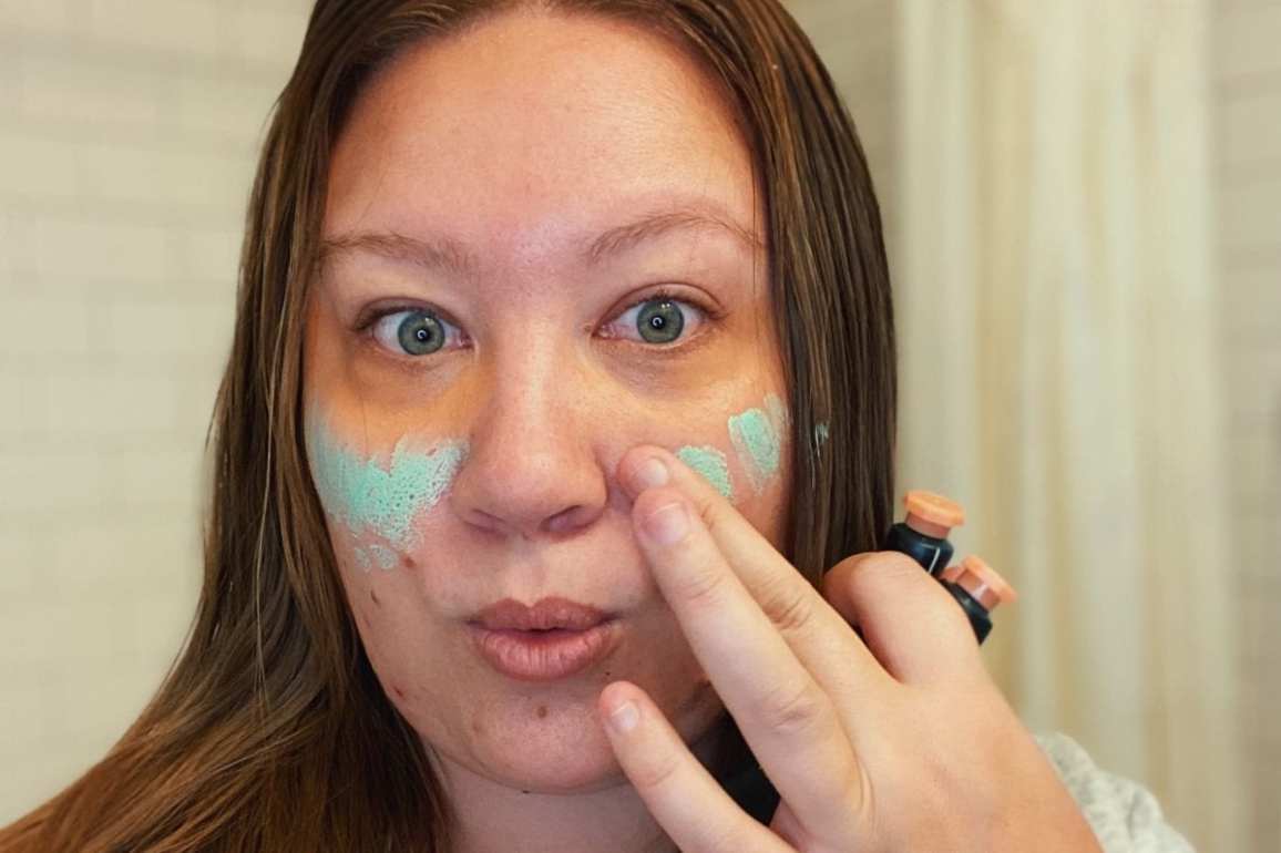 Next, I love the way it blends. So, sure, you look a little silly when the products go on but then you use a little light foundation and boom, nice easy blend with a smooth and bright look. It just makes my skin look even without all the heaviness of concealer.