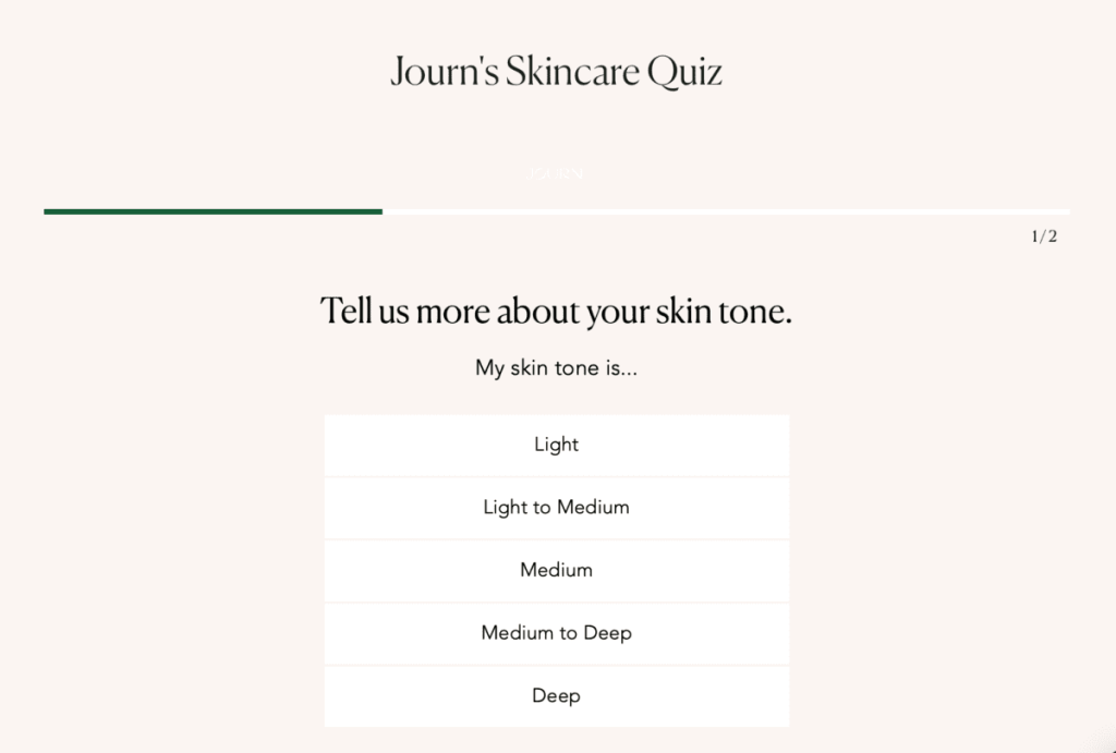 To find the right beauty products for your skin, Journ Beauty has a simple 2-step quiz to get you started.